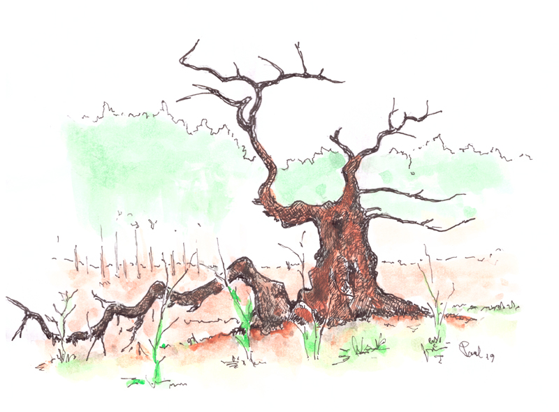 På Hejede Overdrev står resterne af “Den gamle Eg”, der måske blev Danmarks næstældste træ, op mod 1000 år gammel.